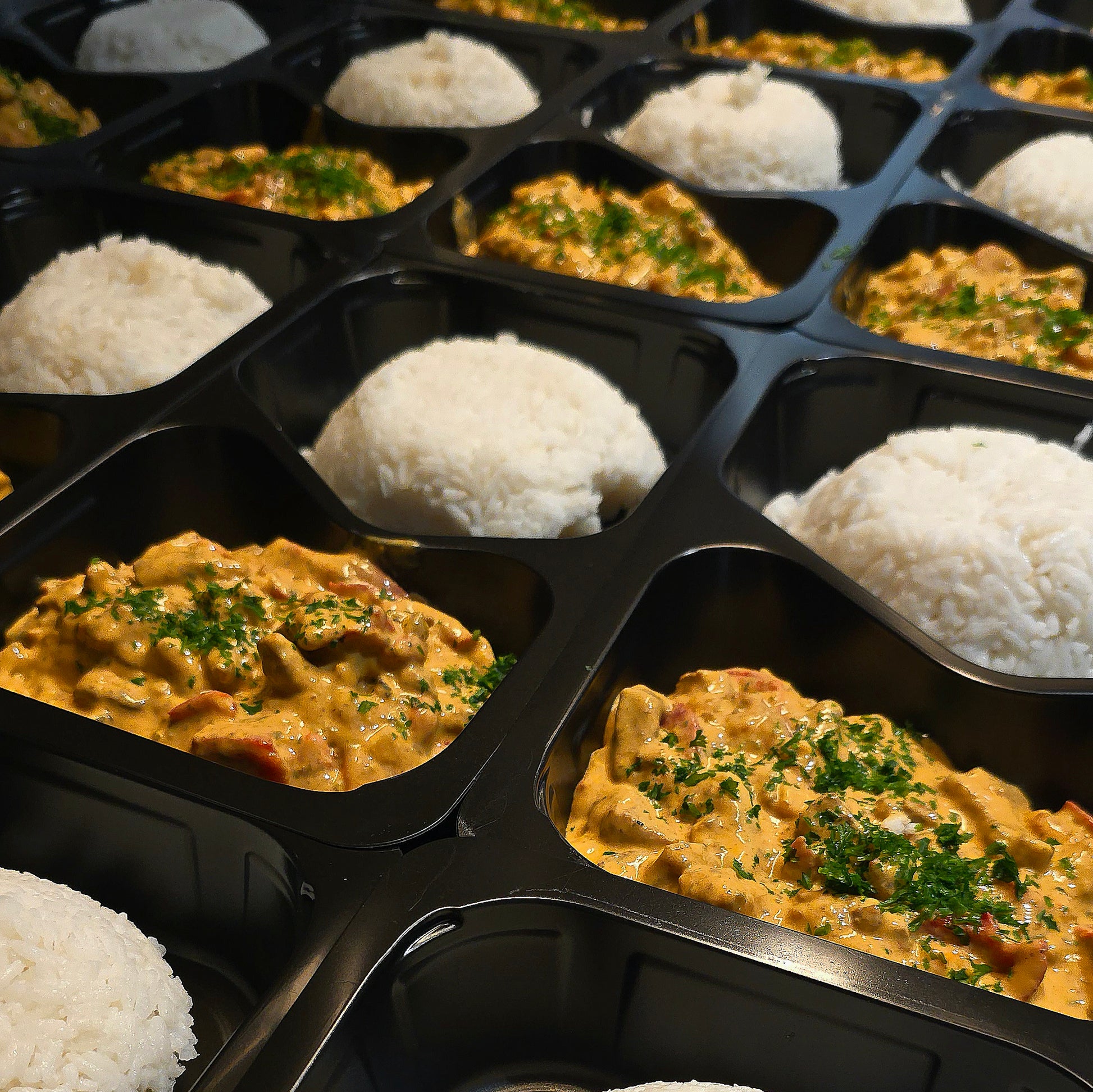 Biff stroganoff (Bog av nötkött, paprika, vatten, CREME FRAICHE (Pastöriserad GRÄDDE, modifierad majsstärkelse, förtjockningsmedel (guarkärnmjöl, fruktkärnmjöl och pektin), syrningskultur), lök. GRÄDDE (pastöriserad GRÄDDE, stabiliseringsmedel (E407)), vitt vin (salt (1,5%), peppar (0,12%), konserveringsmede SVAVELDIOXID E220, kaliumsorbat E202), antioxidant (c-vitamin). Innehåller SULFIT.) tomat, kalvfond (vatten, kalvfond, salt, aromer, socker, modifierad stärkelse, lökpulver, tomatpulver, vinäger, stabiliseringsmedel (xantangummi), dijonSENAP (vatten, SENAPSFRÖ, ättiksprit, salt, surhetsreglerande medel (citronsyra), konserveringsmedel (kaliumdisulfit), persilja, vitlök, salt (NaCl, antiklumpmedel (E535), peppar)
