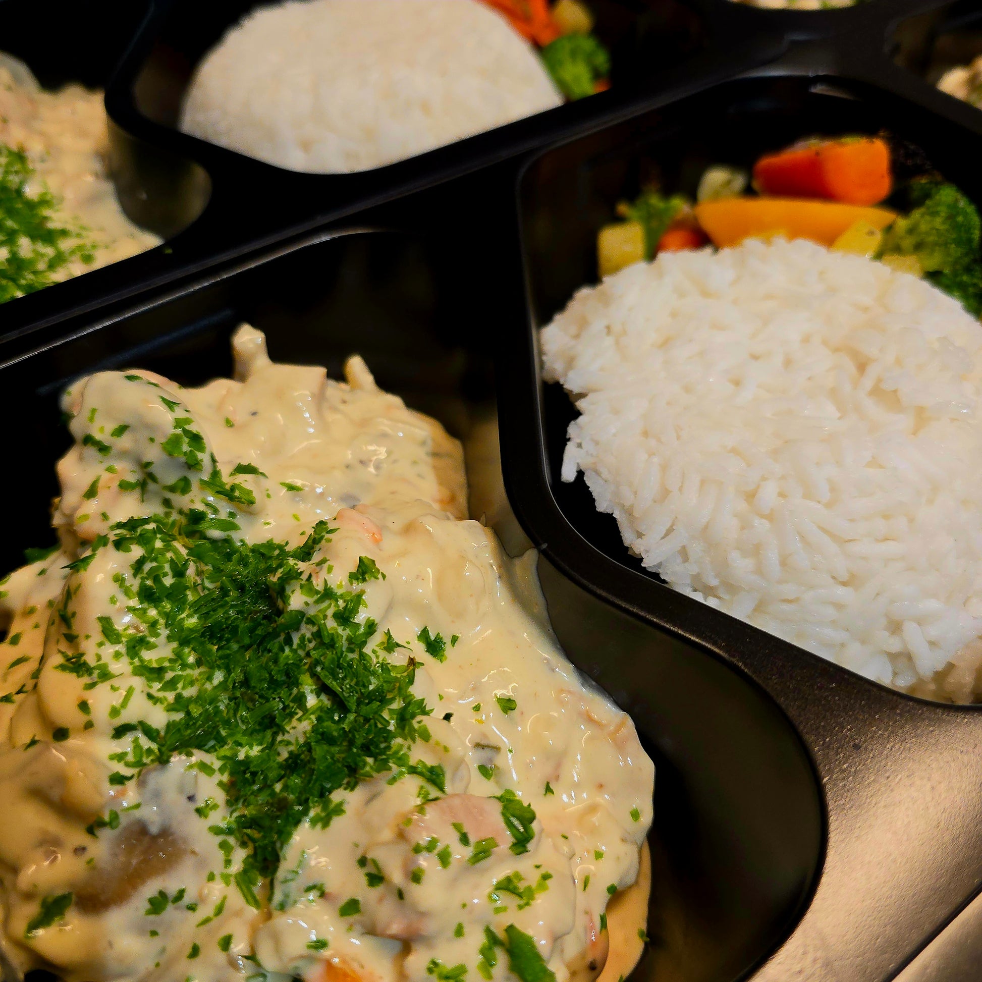 Kycklinggryta (Kycklinglårfilé, vatten, GRÄDDE (Pastöriserad GRÄDDE, stabiliseringsmedel (E407), vitt vin, peppar, konserveringsmedel (SVAVELDIOXID E220, kaliumsorbat E202), antioxidant (c-vitamin). Innehåller SULFIT), champinjon, lök, dijonSENAP (vatten, SENAPSFRÖ, ättiksprit, salt, surhetsreglerande medel (citronsyra), konserveringsmedel (kaliumdisulfit), Kycklingfond (vatten, kycklingfond, kycklingextraktspulver, salt), salt, aromer, socker, modifierad stärkelse, lökpulver, vinäger, vitpeppar, stabiliseringsmedel (xantangummi) dragon, salt (NaCl, antiklumpmedel (E535), svartpeppar)